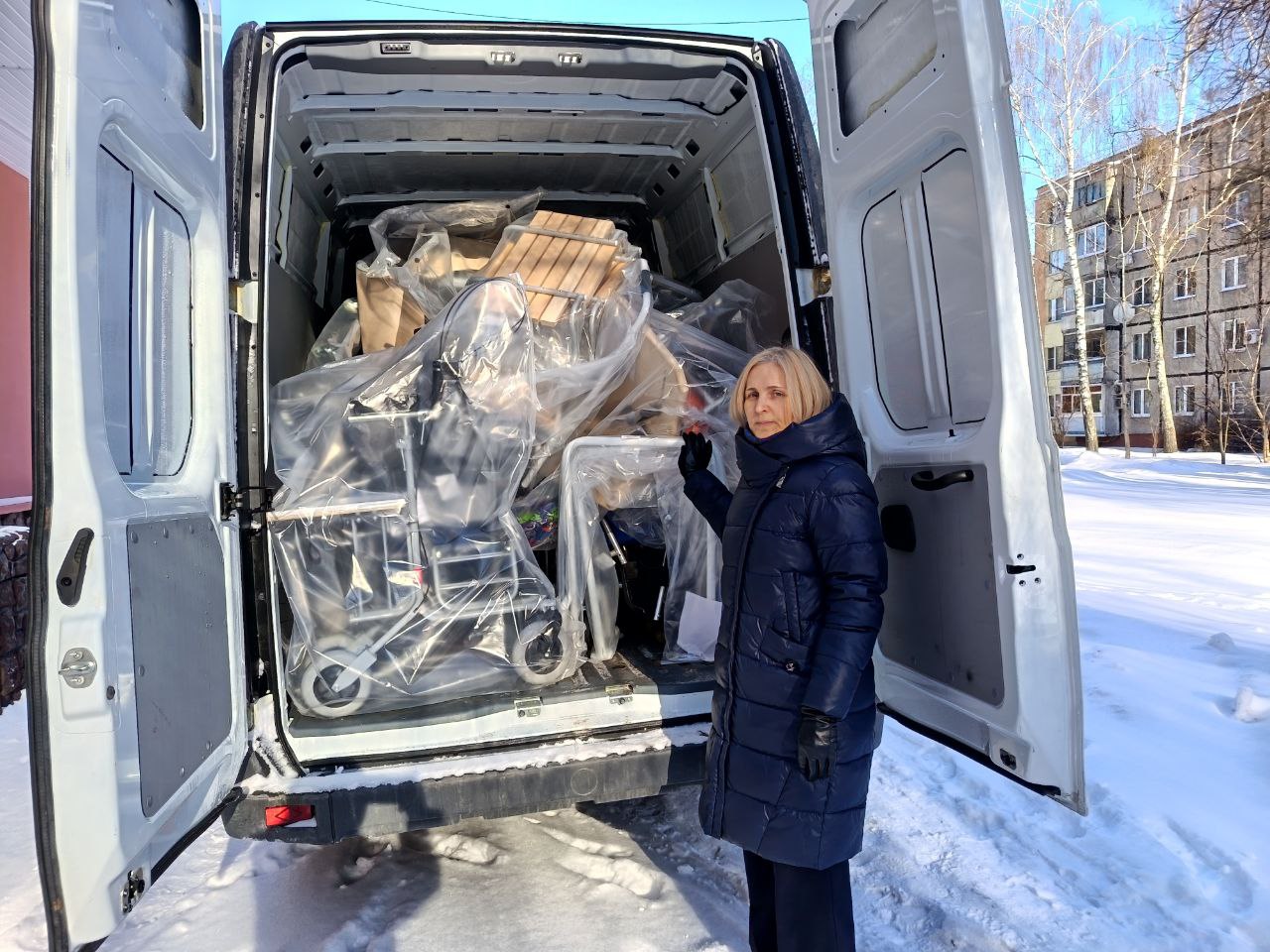 оказала помощь в доставке оборудования, инвентаря и приспособлений для передвижения и облегчения жизни людей с
