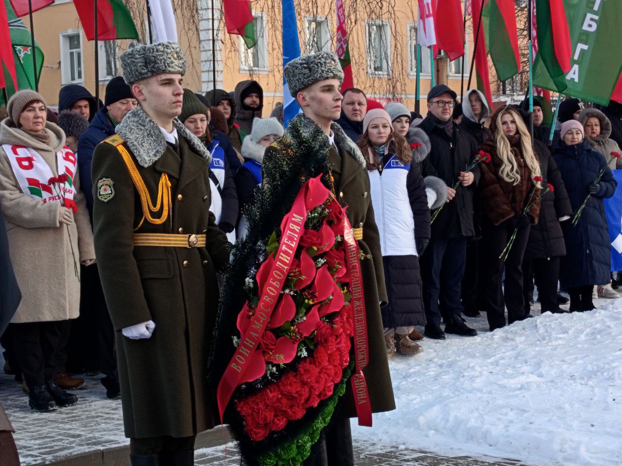 20 февраля в канун Дня защитников Отечества и Вооружённых Сил Беларуси у братской могилы советских воинов по улице